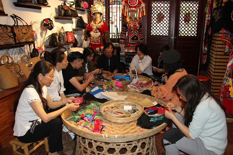 设计师们到楚雄彝绣天地、大姚县咪依噜民族服饰制品有限公司采风