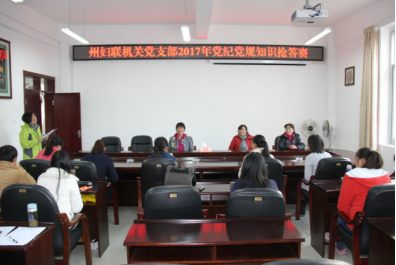 2017年1月17日上午,州妇联机关党支部开展党纪党规知识抢答赛暨“迎新春·庆佳节”系列活动,州妇联机关全体党员及干部职工参加了此次活动。