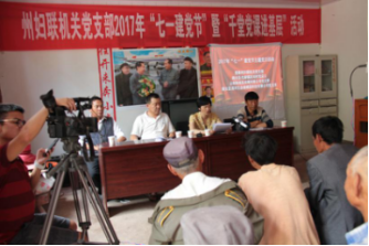五是开展一次主题党日活动。7月6日下午,联合州女企业家协会党支部、州妇女彝绣协会党支部、楚雄市鹿城镇灵秀社区党总支,共同开展了主题党日活动,州妇联党组书记、主席阿明仙为全体党员作了“两学一做”学习教育常态化制度化专题党课,并开展了党章知识抢答活动。