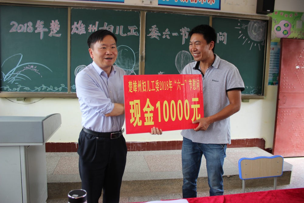 为庆祝2018年“六一”国际儿童节,营造全社会共同关心关爱少年儿童健康成长的良好氛围,5月24日下午、5月30日上午,州委副书记彭志远,州人民政府副州长、州妇儿工委主任杨虹分别带领州妇儿工委副主任、州妇联主席阿明仙,州妇儿工委副主任、州政府办公室信息中心主任冯忠顺一行深入牟定县戌街中心小学左家完小、禄丰县黑井镇复龙小学慰问了学校全体师生及4名困境儿童代表。