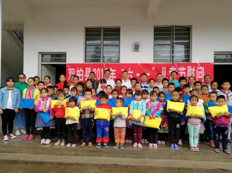 双柏县开展三项活动庆“六一”:举办了2018年“红领巾相约中国梦”主题文艺晚会;开展了走访慰问活动,分别为妥甸镇马龙河完小、大庄镇麻栗树完小、楚雄州特殊教育学校等9所学校的822名师生送去了价值3万元的书包、彩笔等学习用品,为150名特殊儿童、困境儿童送去了价值4.5万元的慰问品和慰问金;开展爱心捐赠活动,为381名学生送去价值8万多元的床上用品485套、书籍1000余册、爱心书包200余个。
