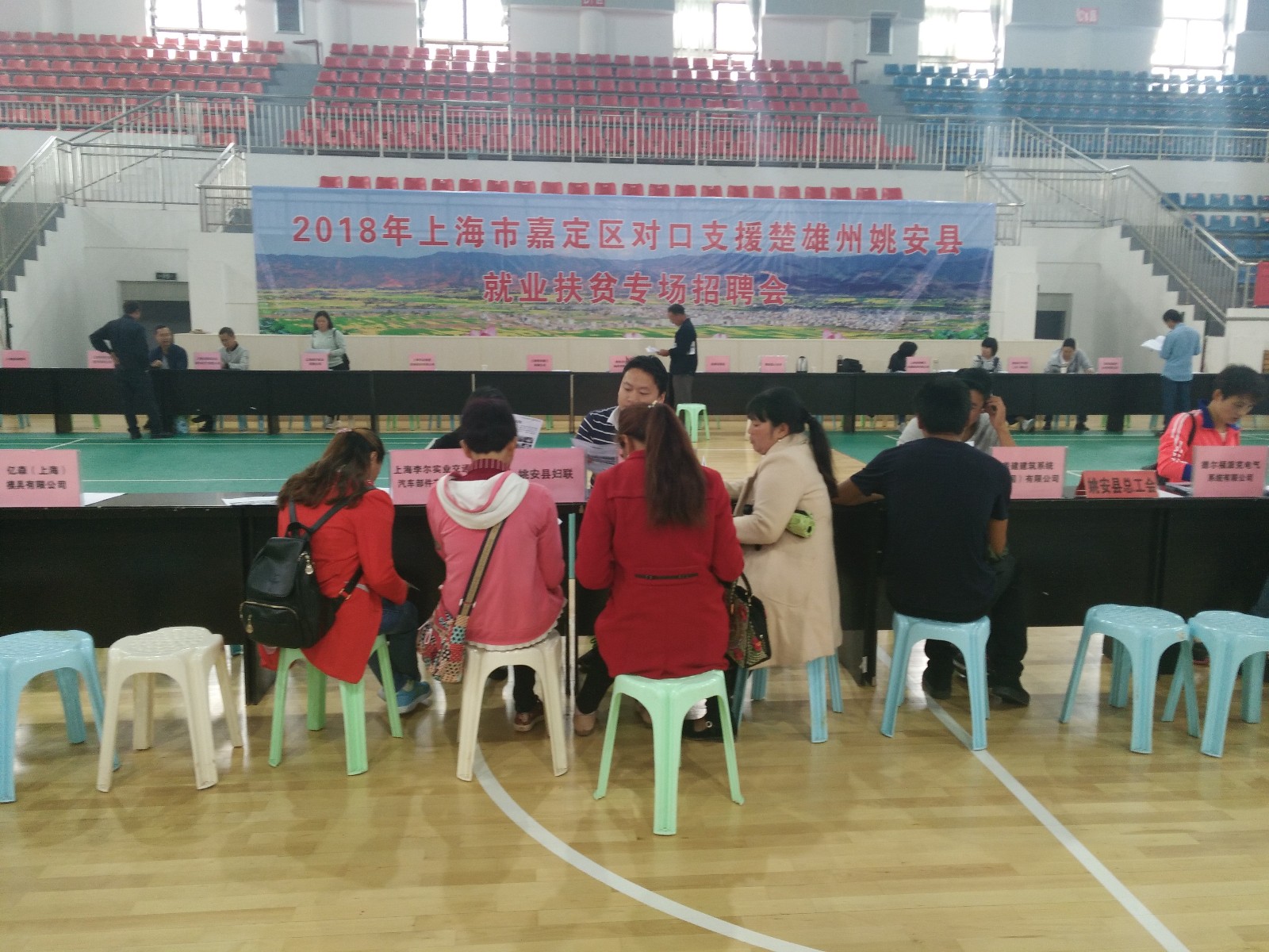 6月27日,姚安县劳动就业服务中心和县妇联共同举办了对口支援就业扶贫专场招聘会,36名巾帼志愿者参加招聘会议服务。来自上海的上海统嘉汽车零部件加工有限公司、上海新迎园(集团)有限公司等25家用工单位,提供各类岗位1300多个,涉及程序设计、酒店服务、餐饮、检验、包装等50多个行业,全县100多名女性参加招聘,经咨询协议,65名女性应聘者与用工单位达成初步就业意向。
